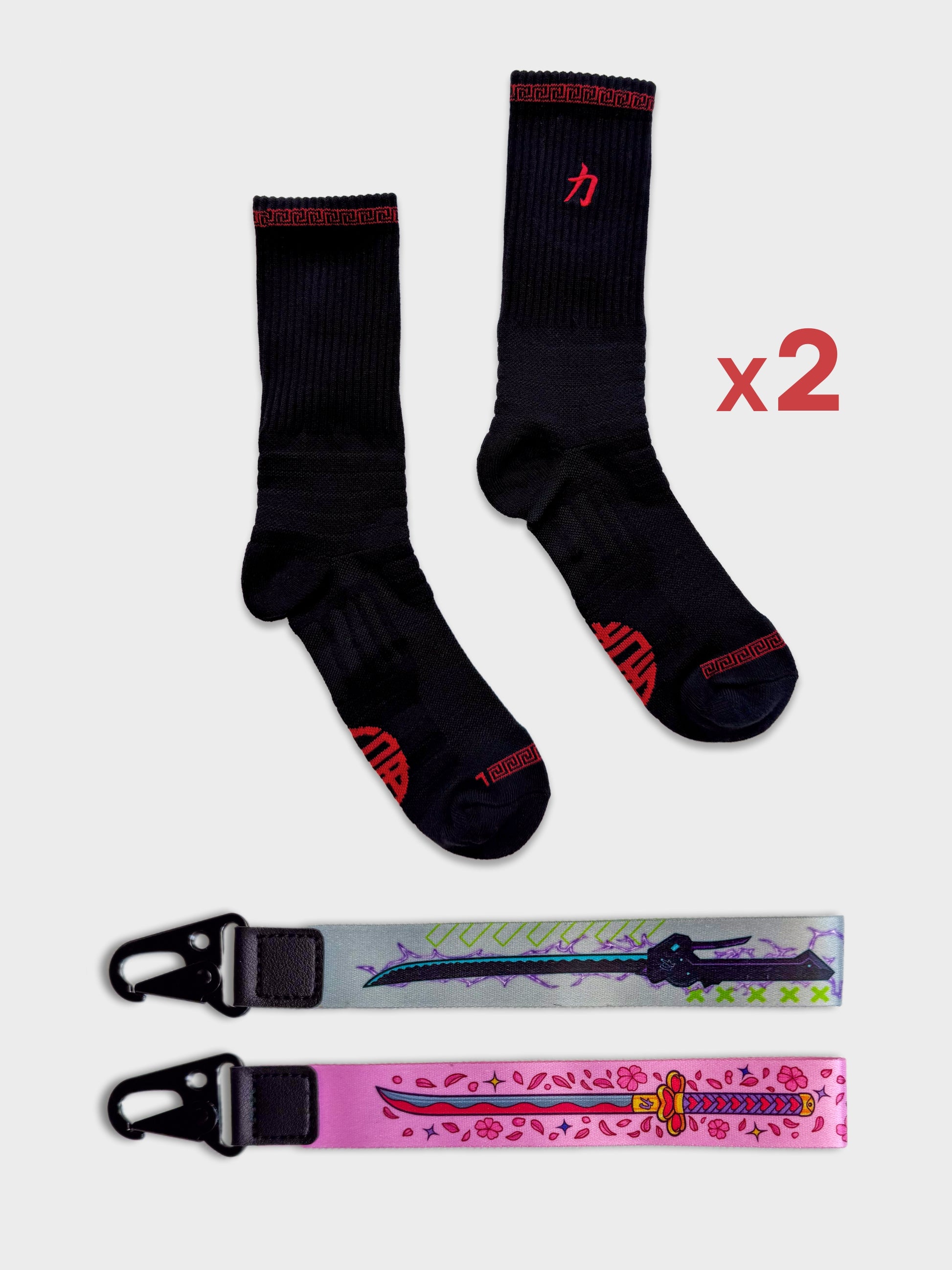 Cop 2x Blessing Socks, and both Katana Keychains all in one bundle - perfect for upgrading your accessory game or matching with a bestie.